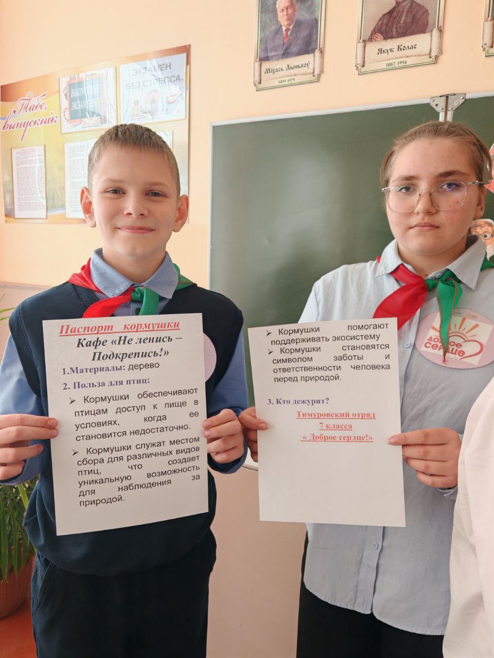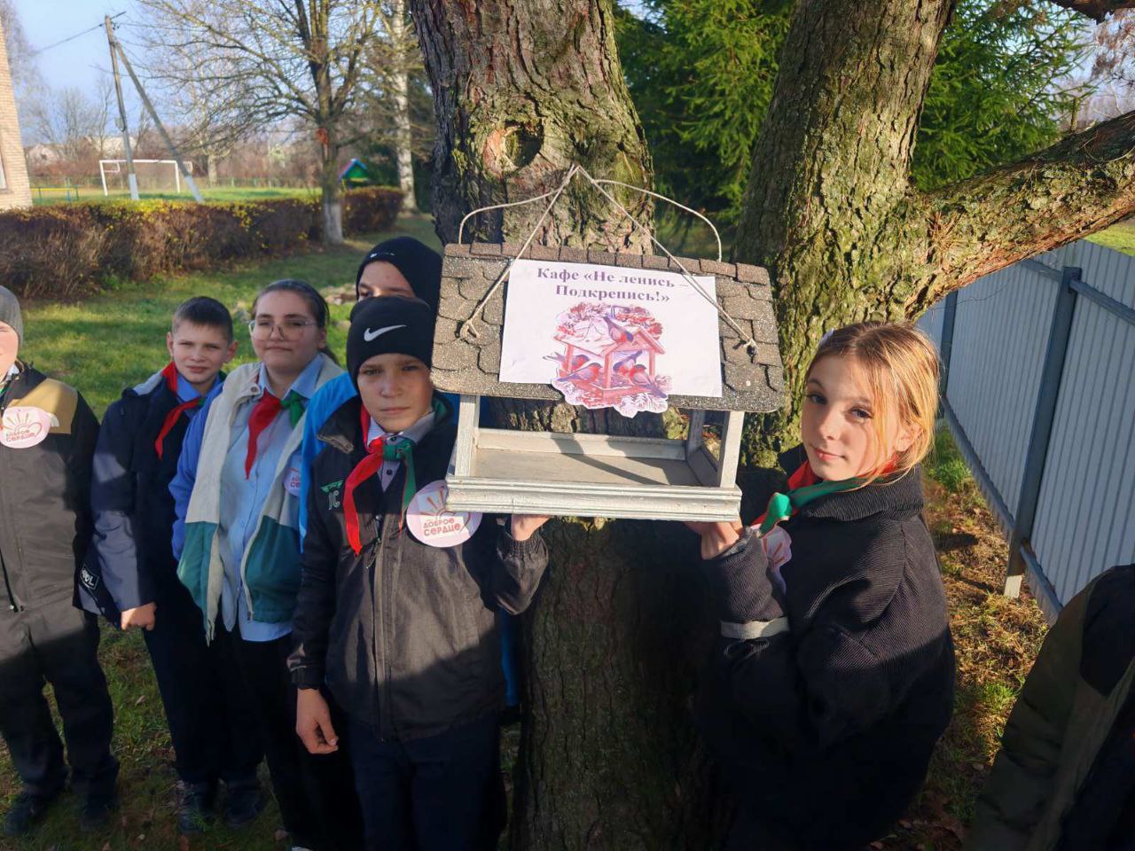 📍 Кормушка уже заняла своё место на территории школы и стала уютным уголком для птиц. 📖 Кроме того, команда подготовила настоящий «паспорт кормушки» — документ, где указаны материалы и правила ухода.