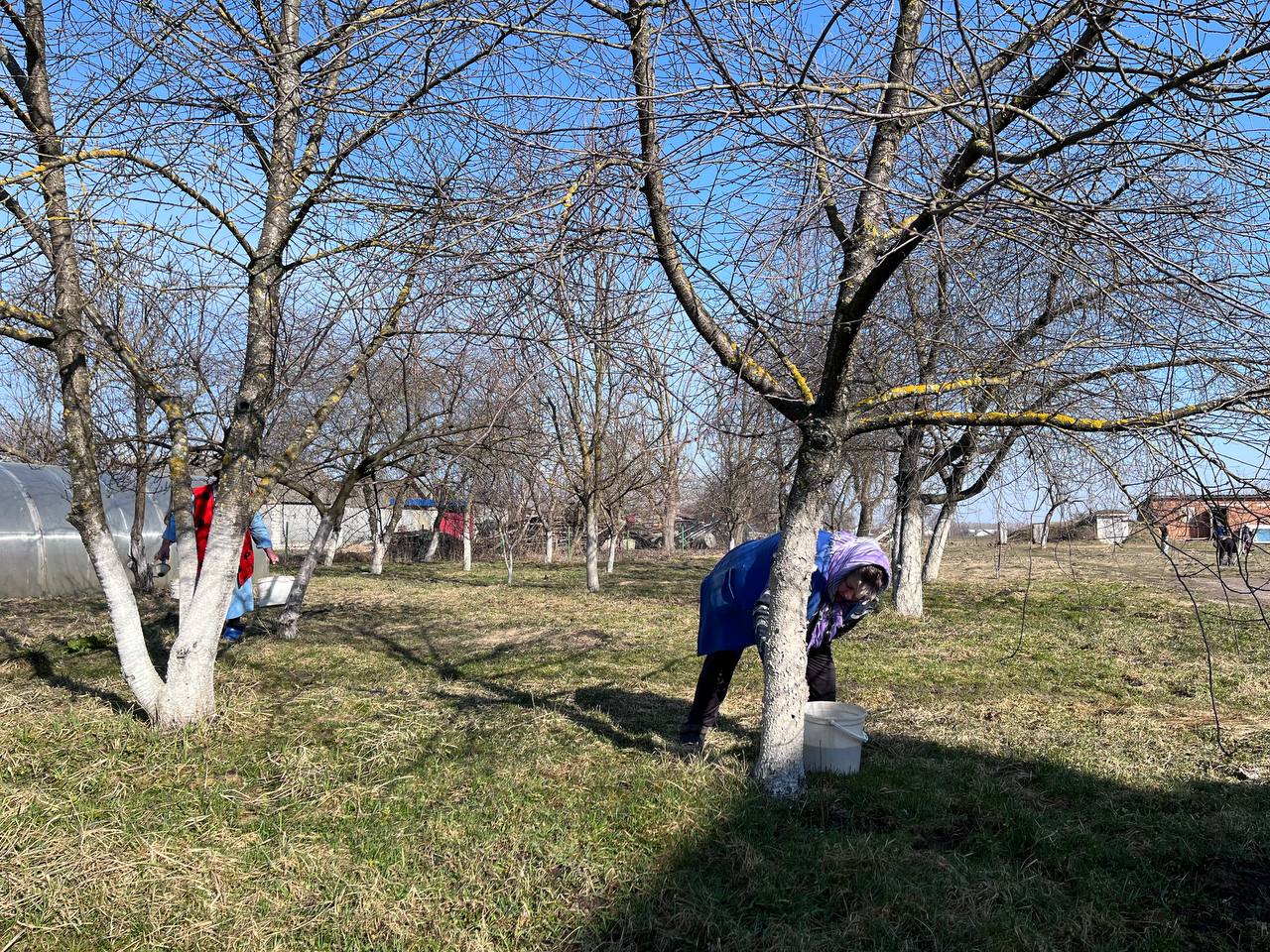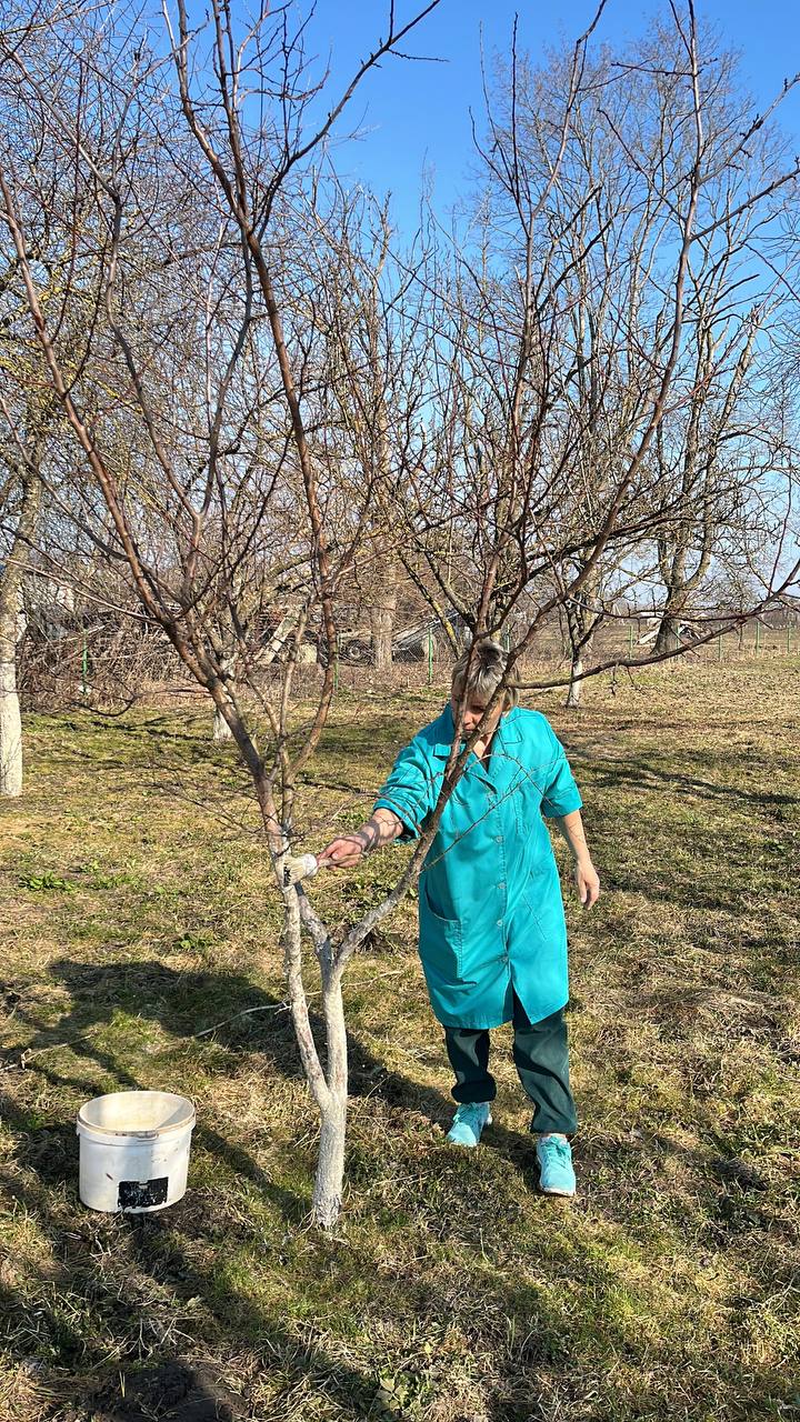 — побелили фасад школы, деревья и бордюры.