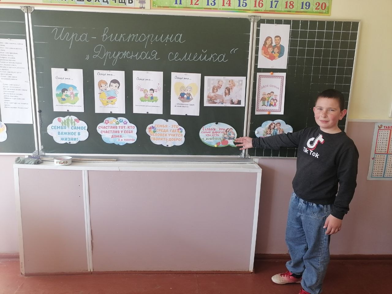 28 марта была проведена игра-викторина»Дружная семейка» , на которой формировалось представление учащихся о том, что семья это счастье. Это забота друг о друге, это взаимопомощь, это совместные праздники. Только в семье человек по настоящему счастлив! Нужно, чтобы у каждого была своя дружная семья! С учащимися 7-8 классов проведена интерактивная игра «Семья — всему начало», на которой были раскрыты значение семьи как основы формирования личности, создание позитивной модели семейных отношений. Вырабатывалось у учащихся умение правильно строить отношения, избегать конфликтов и находить компромиссы.