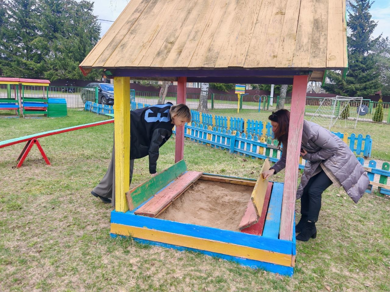 — Качели, песочница, детский домик: нет ли острых кромок, сколов, ржавчины? 🛝