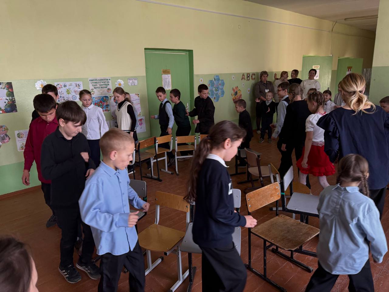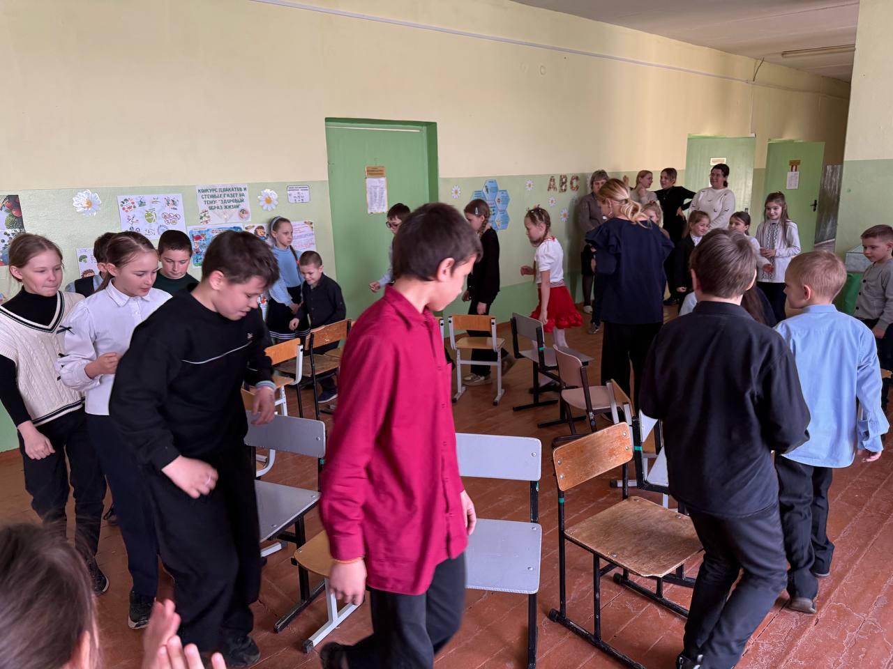 Первая перемена — это было настоящее веселье! Ребята участвовали в игре «Руки-ноги»: нужно было, перемещаясь по карточкам, переставлять руки и ноги точно по изображениям. Смех, движение и командный дух — вот что сделало эту перемену особенной! Такие активности не только заряжают энергией, но и помогают лучше сосредоточиться на уроках. Впереди ещё больше интересных игр и отличного настроения! 🪑 «Стульчики» — перемена на скорость, ловкость и драйв! Вторая динамическая перемена прошла под ритмичную музыку и подарила всем море эмоций! Ребята с азартом участвовали в конкурсе «Стульчики»: нужно было быстро двигаться по кругу и, как только музыка останавливалась, занять свободный стул. Третья перемена стала настоящим музыкальным событием. В этот раз она была полностью посвящена танцам: школьники получили возможность проявить свою фантазию и артистизм, демонстрируя танцевальные движения под актуальные и трендовые композиции. На последней перемене в школе прошла яркая и познавательная фотосессия, посвящённая теме здорового образа жизни. Учащимся предложили выбрать любой атрибут, который ассоциируется с ЗОЖ, и сделать креативные фотографии — как в одиночку, так и вместе с друзьями или одноклассниками.