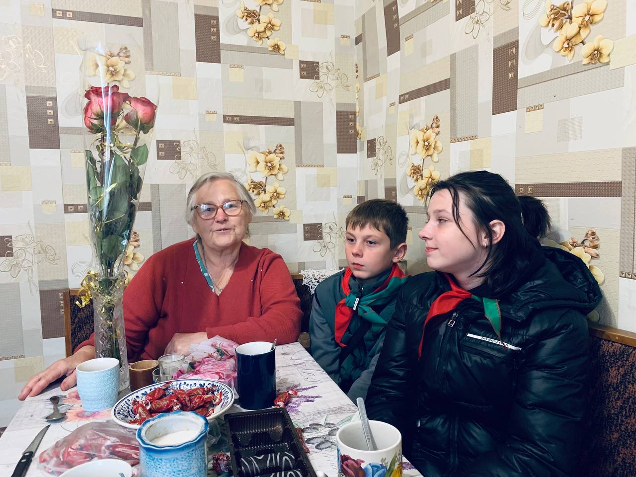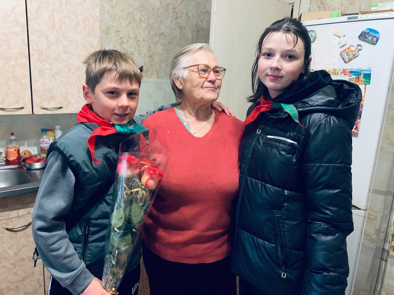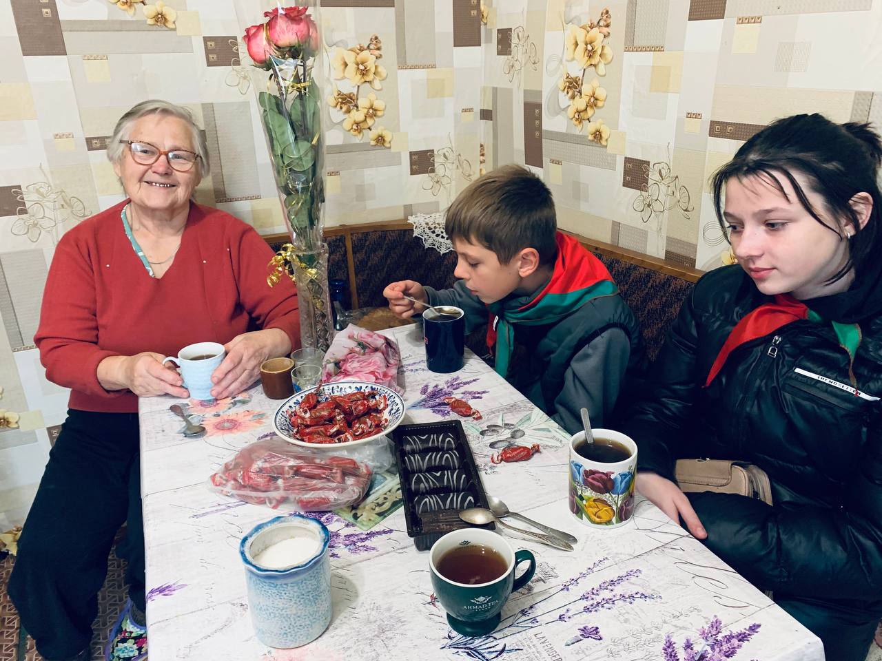 Актив БРПО накануне Дня учителя поздравил ветерана педагогического труда с праздником, вручив в знак благодарности цветы и сладости. За чашкой чая Екатерина Григорьевна пообщалась с ребятами, рассказала о своей трудовой деятельности и пожелала хорошо учиться, делать добро и ценить мирное небо над головой.